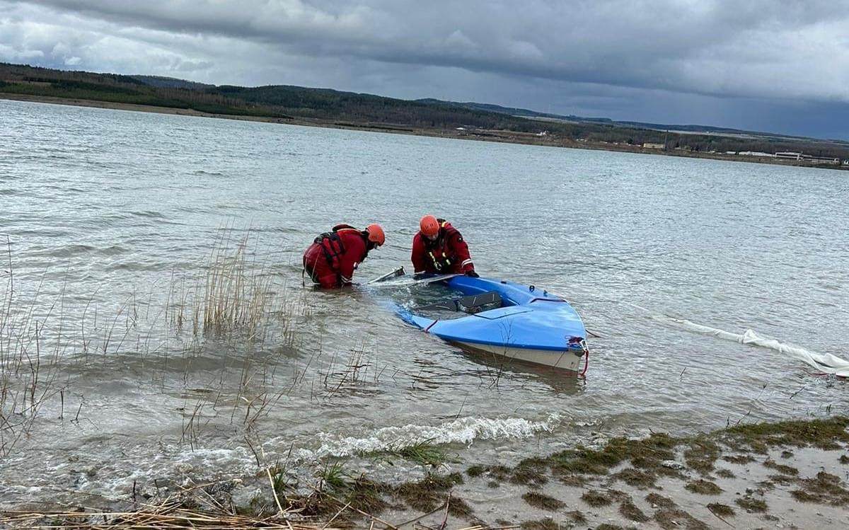 Na místo samozřejmě okamžitě vyjela dvě družstva hasičů s člunem a po cestě podél břehu jezera se dostali co nejblíž k místu, kde byla na hladině převrácená loď.