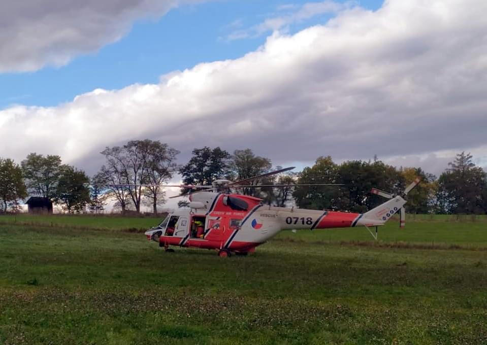 V nočních hodinách startoval vrtulník potřetí, tentokrát do Zbiroha. Ženu v bezvědomí připojenou na umělou plicní ventilaci transportovala posádka také do Fakultní nemocnice v Plzni.