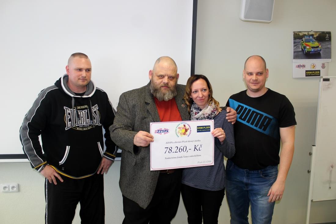 Krajští zdravotničtí záchranáři si dnes pozvali do svého sídla zástupce Nadačního fondu Šance onkoláčkům, aby jim předali symbolický šek na částku 78.260 korun.