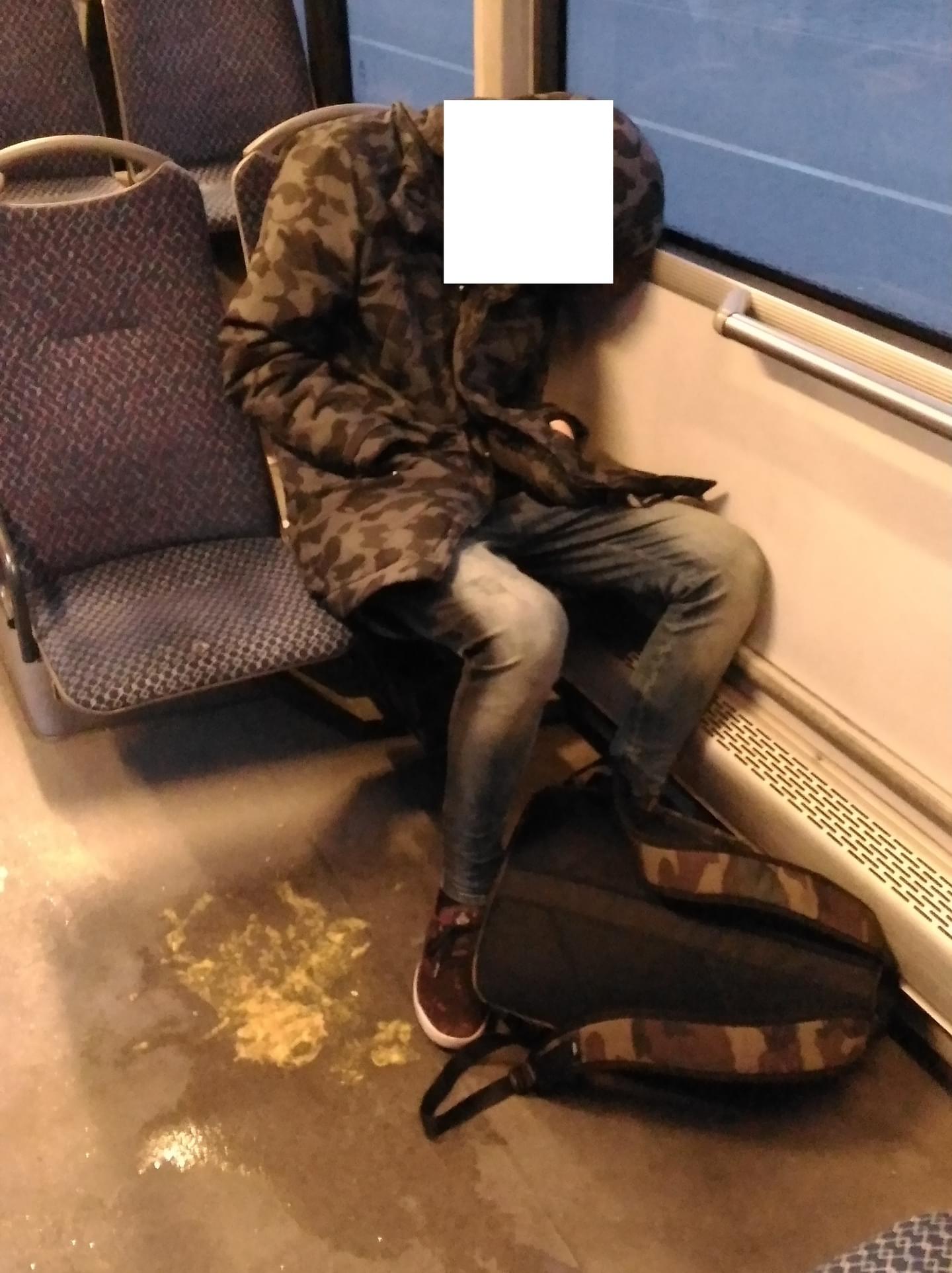 Když přijeli strážníci na zastávku v Šumavské ulici, zjistili, že mladík pozvracel jak sám sebe, tak i podlahu autobusu a brzy bylo jasné, proč ke všemu došlo.