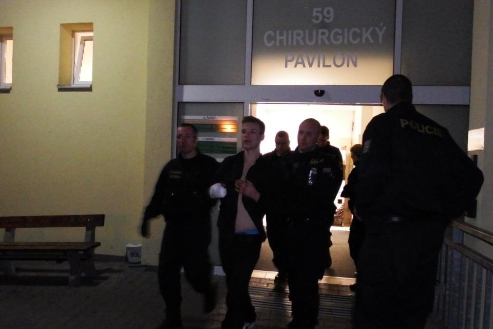 Po ošetření na chirurgii byl mladík převezen na záchytku a ze svého chování se bude ještě zodpovídat.