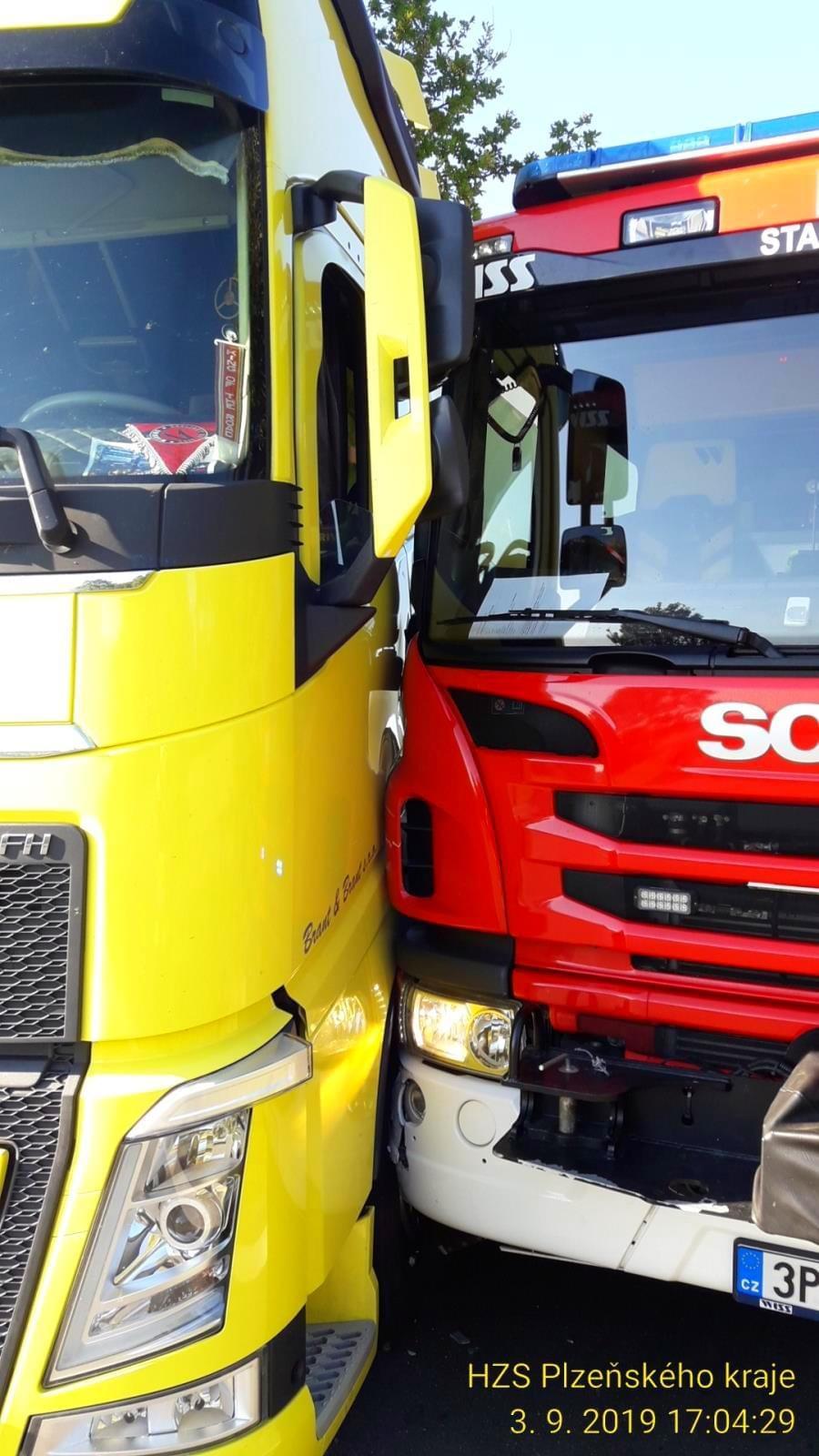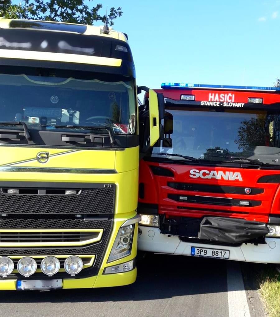 "Za policii mohu uvést, že řidič skutečně vyjel z kolony do cesty přijíždějícímu vozu hasičů. Dvaadvacetiletý řidič kamionu vinu na způsobení nehody na místě uznal a věc tak mohla být vyřešena na místě v příkazním řízení," uvedla mluvčí policie.