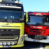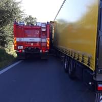 V článku jsme také informovali, že při cestě k této nehodě došlo ke střetu zásahového vozidla HZS s kamionem, jenž nečekaně vybočil z kolony vozidel stojící u této nehody. Jednalo se o drobnou nehodu bez zranění, takže ji policisté uzavřeli na místě, k čemuž měli i souhlas viníka, tedy mladého řidiče kamionu.