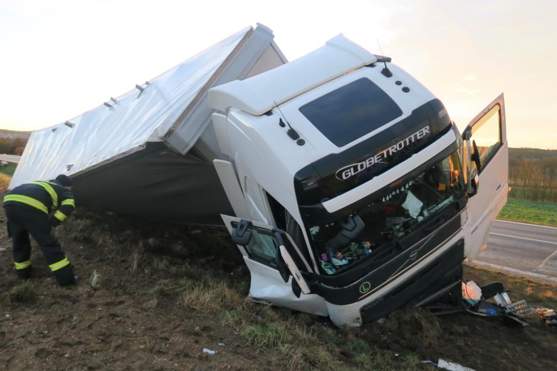 "Alkohol byl u řidiče vyloučen provedenou dechovou zkouškou. Škoda na nákladním automobilu Volvo byla vyčíslena na 450 tisíc korun, na návěsu Kögel na 80 tisíc korun, na dopravním značení, svršku silničního příkopu a můstku byla škoda vyčíslena na 15 tisíc korun," doplnila mluvčí policie.