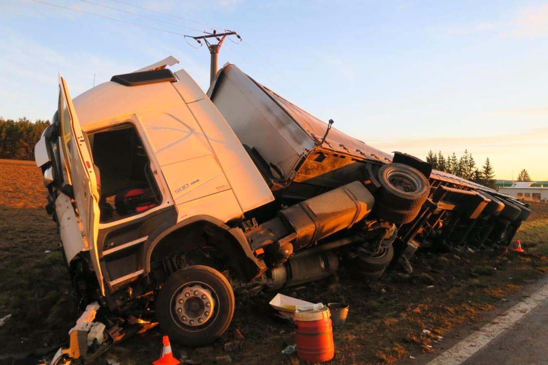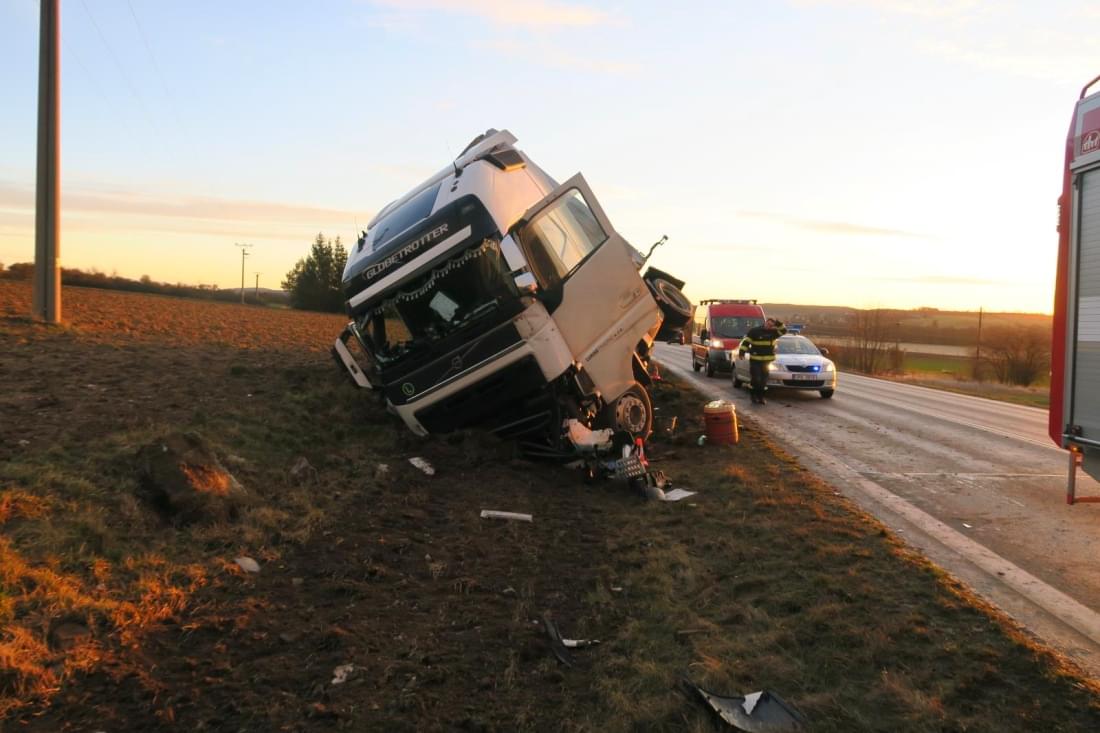 "Třiadvacetiletý řidič nákladního automobilu Volvo s návěsem Kögel jedoucí ve směru od obce Staňkov na obec Křenovy z nezjištěných příčin vjel na pravý okraj komunikace a následně vyjel vpravo mimo komunikaci, kde postupně narazil do můstku na pole a svislého dopravního značení," popsala tisková mluvčí policie.