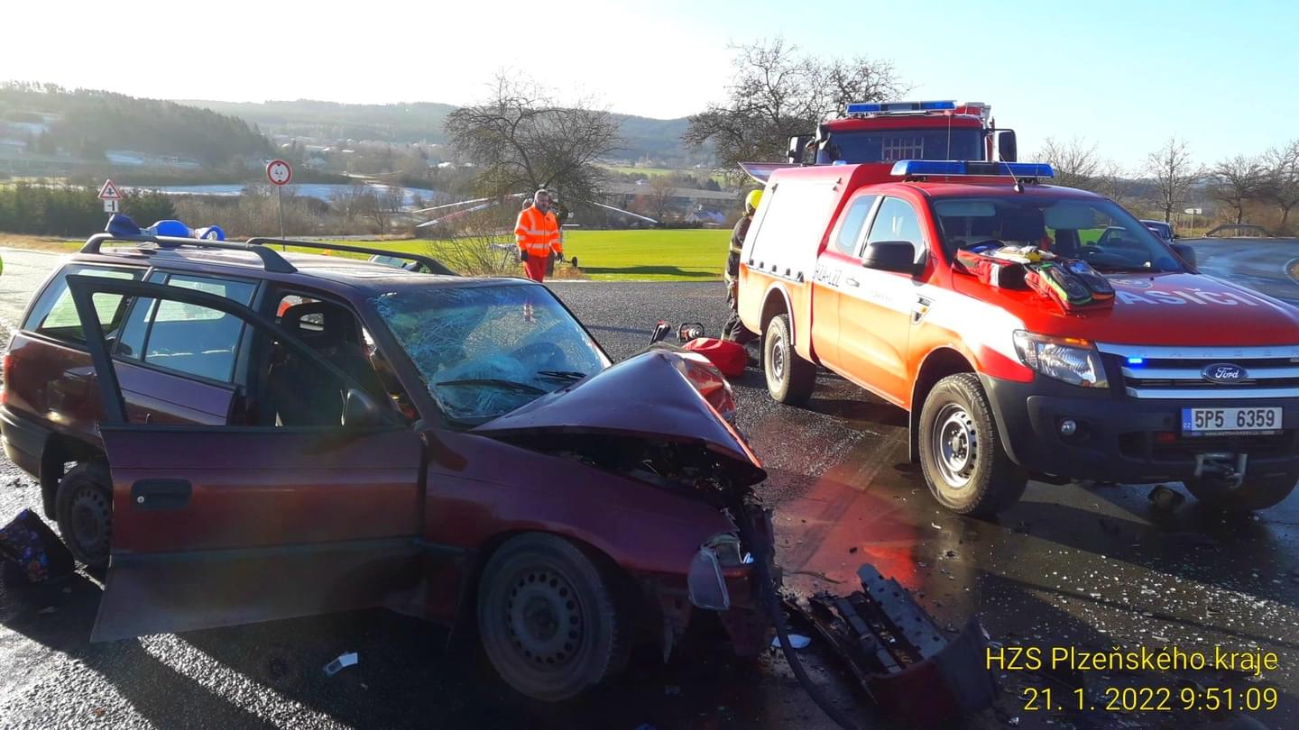 Ke střetu dvou osobních automobilů došlo dnes po deváté hodině dopoledne v Plzeňské ulici v Mýtě na Rokycansku. "Z dosavadního šetření dopravních policistů je zřejmé, ze řidič narozeny v roce 2000, který jel s vozem Honda ve směru od Mýta na Medový Újezd při odbočování vlevo nedal přednost vozidlu Opel Astra přijíždějícímu od Holoubkova," popsala tisková mluvčí policie.