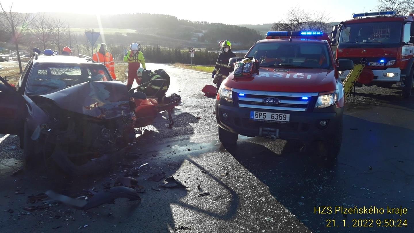K nehodě vyjely všechny záchranné složky, hasiči zajistili místo události a pomocí hydraulických nástrojů z Oplu vyprostili dva zraněné. Vzhledem k povaze utrpěných zranění posádky vozu Opel vzlétl i vrtulník LZS. "Muž a žena oba ve věku cca 75 let, byli transportováni se středně těžkými zraněními, ale při vědomí na akutní příjem Fakultní nemocnice Lochotín," uvedla tisková mluvčí záchranářů.