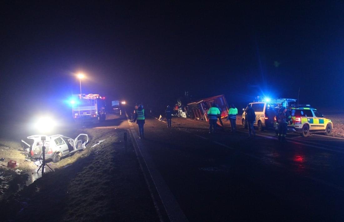 U odbočky na Petrovice došlo dnes v půl šesté ke střetu osobního vozidla s kamionem. Z místa je již potvrzeno jedno smrtelné zranění řidiče vozu Renault Clio, muže narozeného v roce 1998. Víme odkud tento řidič je, ale s ohledem na jeho rodinu toto nebudeme zveřejňovat.