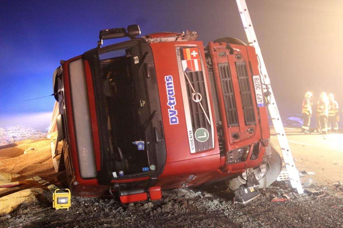Po střetu obou vozidel zůstal kamion převrácený mimo vozovku, ale jeho řidič vyvázl bez zranění. V obou vozidlech cestovali řidiči sami, takže nedošlo ke zranění dalších osob.