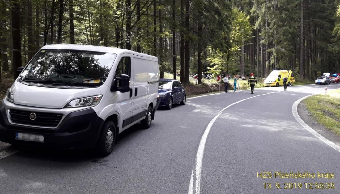 Před jednou hodinou odpoledne došlo v zatáčkách mezi Javornou a Čachrovem ke střetu motocyklu a dodávky.