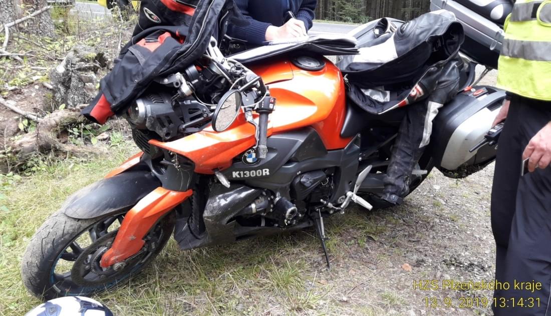 "Třiapadesátiletý řidič motocyklu tovární značky BMW při průjezdu pravotočivé zatáčky nepřizpůsobil rychlost jízdy a přejel do protisměru, kde se bočně střetl s protijedoucí dodávkou tovární značky Fiat třiapadesátiletého cizince," popsala tisková mluvčí policie.
