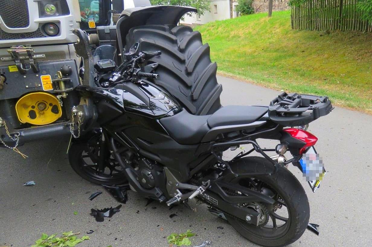 Včera krátce po desáté hodině dopoledne došlo k nehodě, která se stala na silnici v obci Staré Sedlo. Ve směru od obce Darmyšl jel řidič s motocyklem značky Honda, který svůj stroj podle všeho nezvládl a vjel do protisměru, kde zrovna v tu chvíli projížděl traktor.