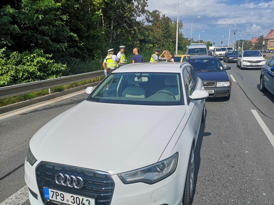 Tato nehoda se sice obešla bez zranění, ale vážně blokuje provoz ve směru z Lochotína do centra. I zde policisté vyloučili u řidičů požití alkoholu a nehodu na místě šetří.