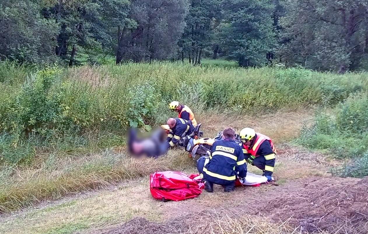 Hasiči zraněného do příjezdu zdravotnické záchranné služby stabilizovali kvůli podezření na poranění páteře. "Asistovali jsme jak u ošetřování zraněné osoby, tak i následnému transportu do vrtulníku," uvedl mluvčí hasičů.