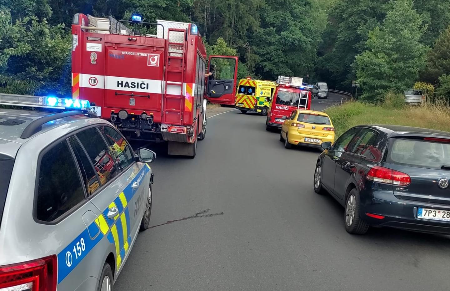 Motocyklista při nehodě utrpěl zranění, takže k nehodě vyjely všechny záchranné složky. Hasiči zajistili místo události a muže si do péče převzali záchranáři.