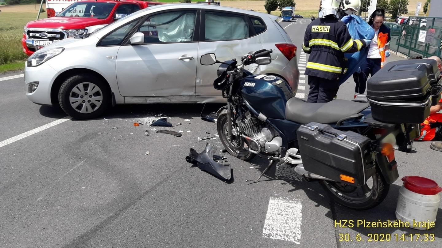 "Řidička narozená v roce 1959 s vozidlem značky Hundai vyjížděla z vedlejší komunikace na silnici a odbočovala vlevo, přičemž nedala přednost pětatřicetiletému motocyklistovi a tak došlo ke střetu. Provedené dechové zkoušky na přítomnost alkoholu byly u obou řidičů negativní," popsala nehodu mluvčí policie.