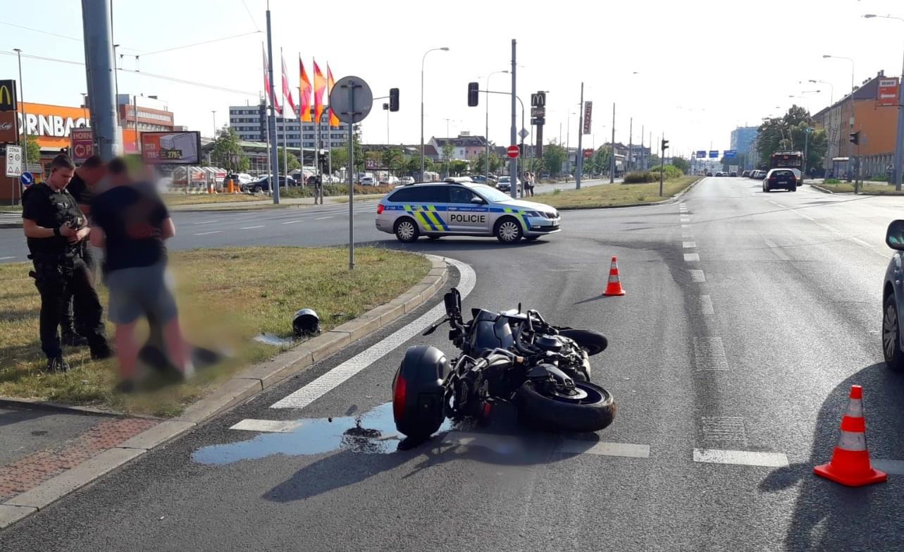 V úterý kolem šesté hodiny večer došlo v ulici U Prazdroje na křižovatce s výjezdem nákupního centra Hornbach k dopravní nehodě, při které osobní vůz srazil motorkáře jedoucího směrem do centra, který brzdil před semaforem. Náraz motocykl srazil na zem, po které se klouzal asi dvanáct metrů až na přechod pro chodce.