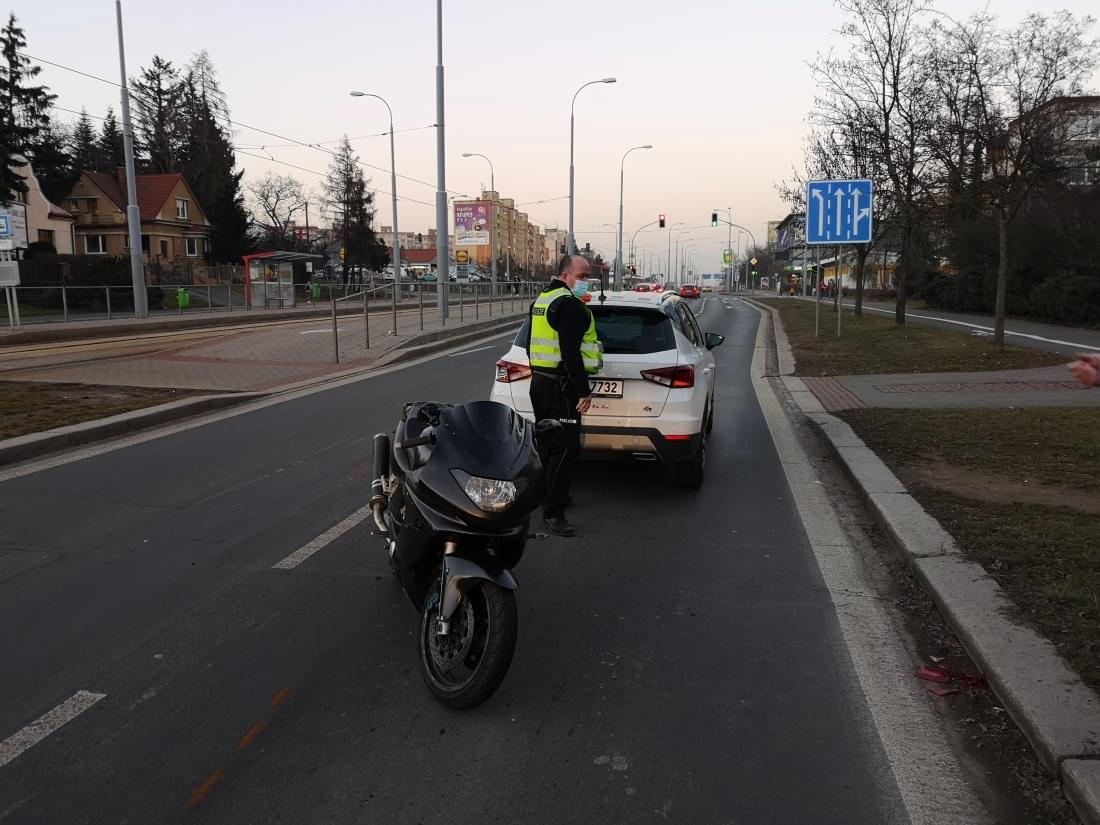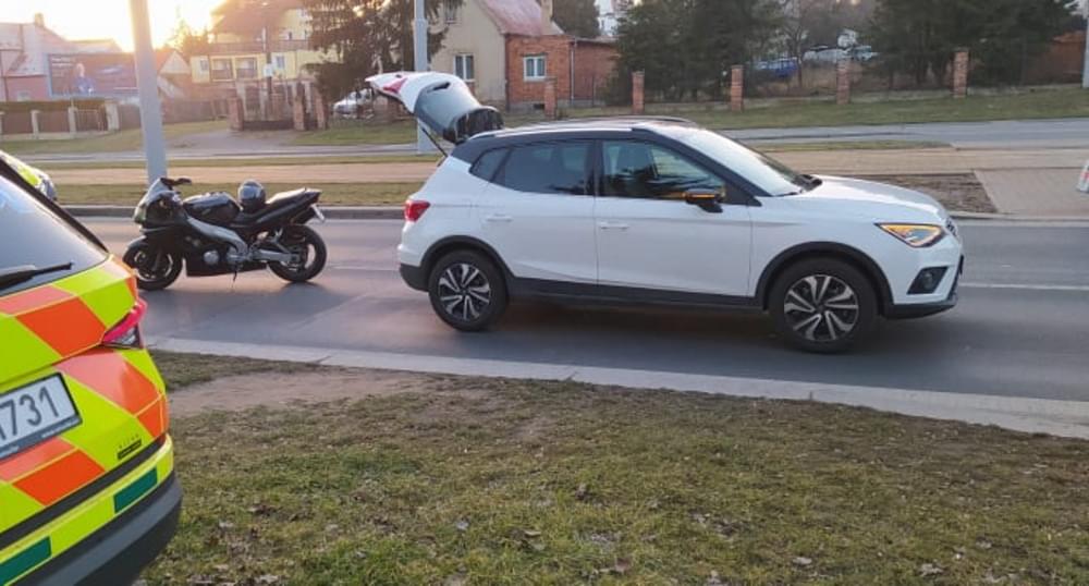 Dnes po páté hodině odpoledne došlo na Karlovarské třídě v Plzni ke střetu motocyklu s autem.