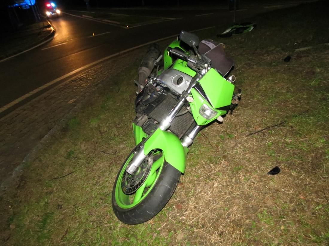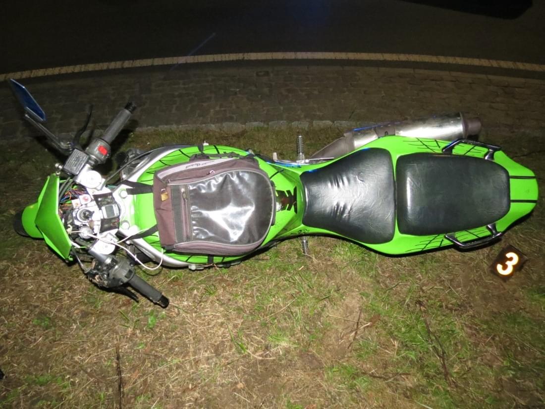 Motocyklista však nereagoval a pokračoval ulicí Koldinova až ke kruhovému objezdu u čistírny odpadních vod. Kruhový objezd projel v protisměru a pokračoval velkou rychlostí směrem k plaveckému bazénu, kde vzhledem k vysoké rychlosti před kruhovým objezdem nezvládl řízení, havaroval a utrpěl zranění.