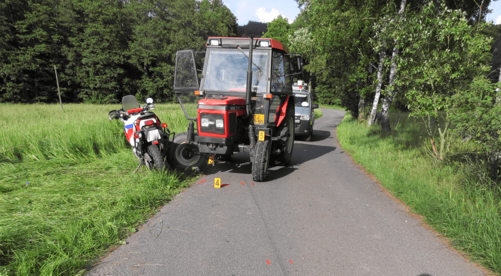 "Devětatřicetiletý muž z Běšinska s motocyklem značky Honda po místní komunikaci od obce Chvalšovice. Při projíždění mírné pravotočivé zatáčky nepřizpůsobil rychlost jízdy, přejel s motocyklem do protisměru a došlo ke střetu s protijedoucím traktorem značky Zetor. Odhadnutá hmotná škoda činí 40 tisíc korun," popsala tisková mluvčí policie.