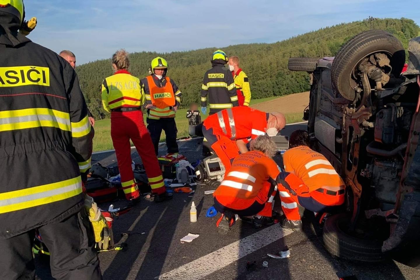 Silnici 27 je v úseku nehody neprůjezdná, na místo vyjel koroner a vyšetřování nehody převzali kriminalisté. Čekáme na jejich zprávu a poté doplníme.