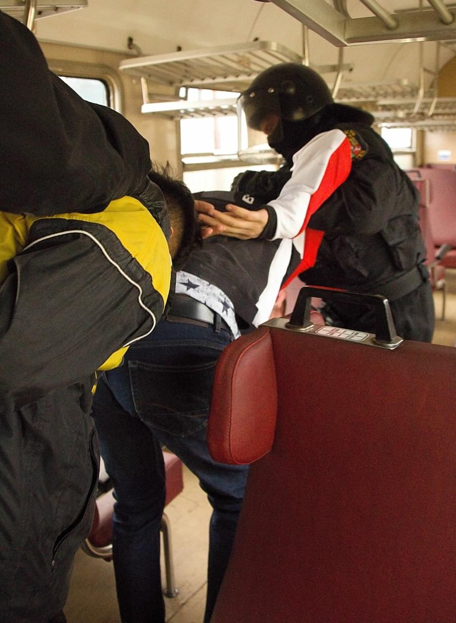 Část nacvičování byla zaměřena na taktiku nedestruktivního vniknutí do vlakového vagónu, přepravujícího cestující na sportovní či kulturní akce a účastnící se diváckého násilí.