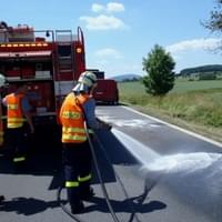 "Část tohoto nákladu se vysypala na silnici. Hasiči společně se zaměstnanci firmy zasypali kafilérie chloraminem a vozovku omyli a poté mastnou vozovku hasiči zasypali sorbentem.