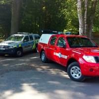 nimi i psi Správy Národního parku Šumava Bady a Bax, kteří jsou