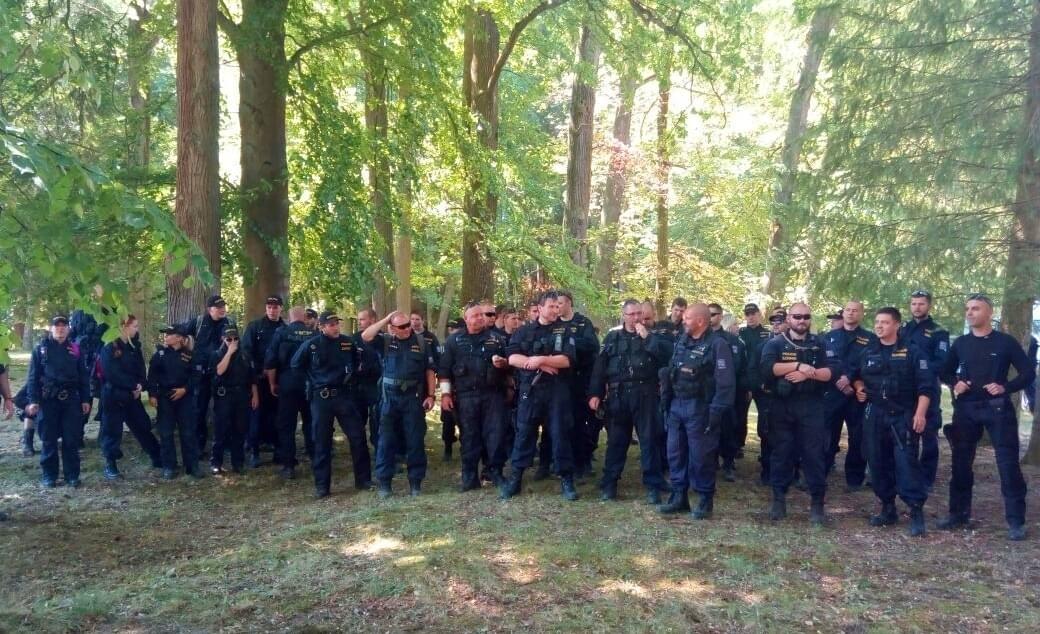 příslušníci pořádkové jednotky policie, drony a psovodi, ale spolu s