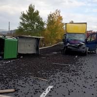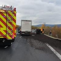 Včera po půl čtvrté odpoledne došlo na silnici I/13 vedoucí z Karlových Varů do Chomutova poblíž Ostrova k dopravní nehodě, při které se dodávka značky Fiat střetla s multikárou převážející uhlí. Ta se po nárazu zezadu převrátila na bok a došlo k rozsypání nákladu.