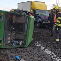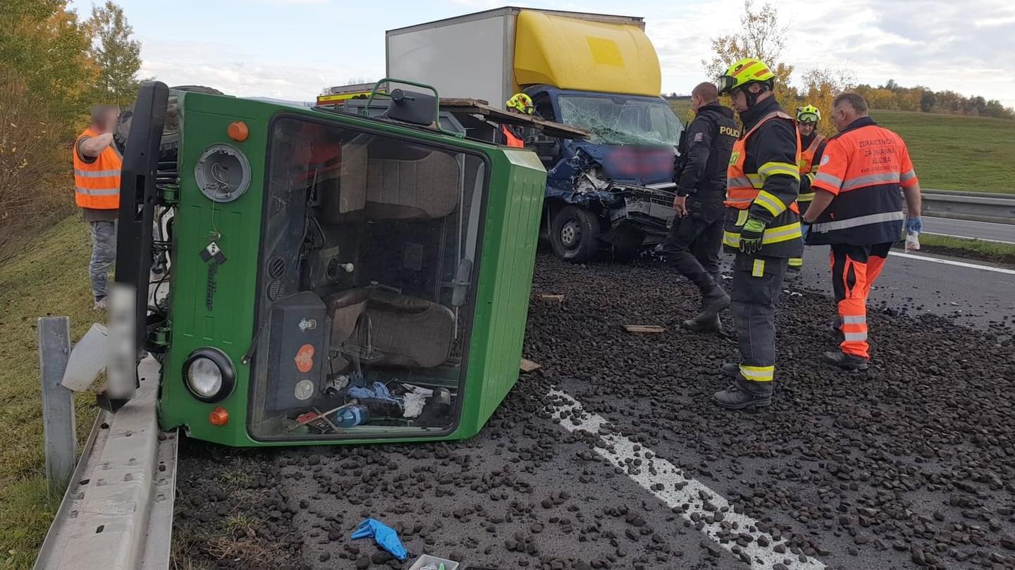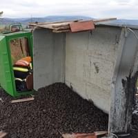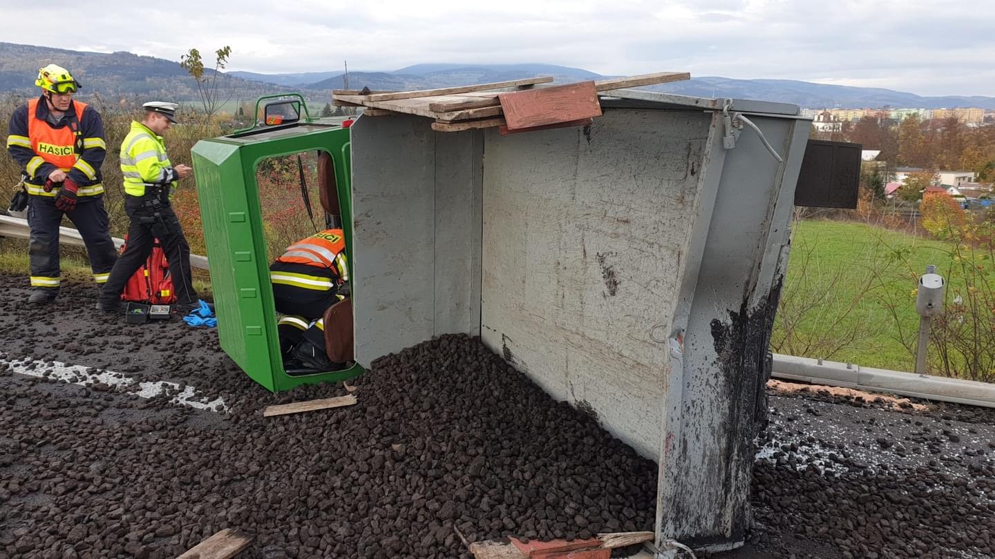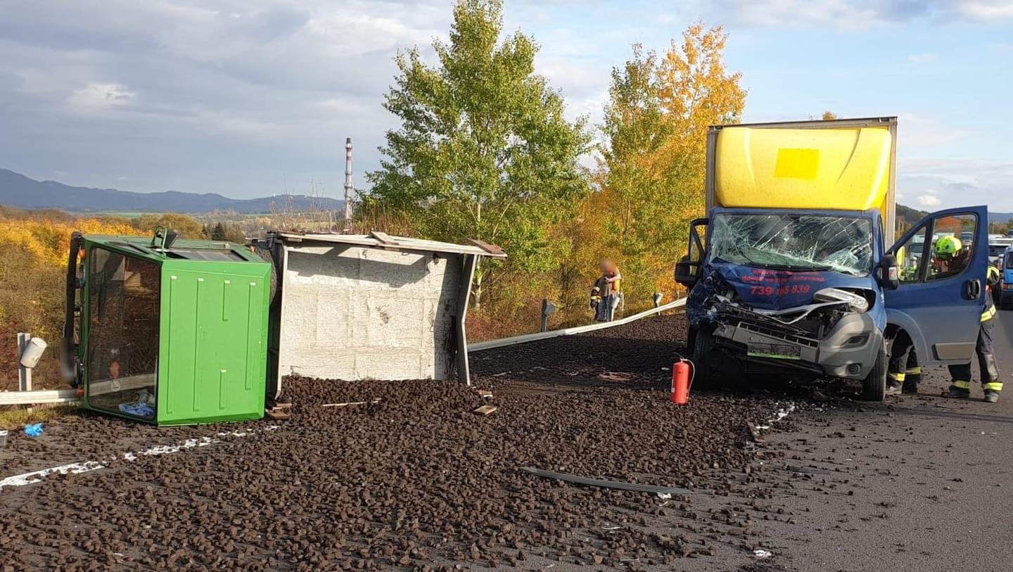Hasiči ze dvou jednotek mezitím zajistili místo nehody, provedli protipožární zabezpečení a také pomohli s úklidem vysypaného nákladu.