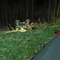 Při havárii muž utrpěl vážné zranění, se kterým musel být letecky transportován do nemocnice. Dechová zkouška nemohla být z důvodu zdravotního stavu řidiče provedena a pro vyloučení přítomnosti alkoholu tak policisté nařídili odběr krve v nemocnici.