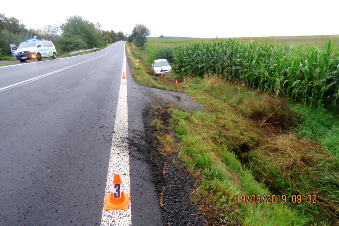 "Sedmačtyřicetiletý řidič jel se svým vozidlem Ford Mondeo od Vidic na Mířkov, nepřizpůsobil rychlost svého vozidla mokrému povrchu pozemní komunikace, v mírné pravotočivé zatáčce najel na pravý okraj pozemní komunikace a následně sjel do pravého silničního příkopu a do kukuřičného pole," popsala tisková mluvčí policie.