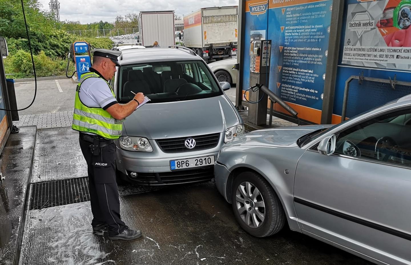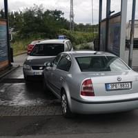 Dnes kolem jedné hodiny odpoledne došlo k dopravní nehodě u křižovatky ulic Rokycanská a Těšínská v Plzni. Řidič vozu Škoda Superb, který jel směrem od Rokycanské k Baumaxu, zde náhle vyjel na chodník, přejel trávník i parkoviště a vjel do samoobslužné myčky, kde narazil do majitelem právě umývaného Volkswagenu Caddy. Podle svědků náraz nebyl příliš veliký a nikdo z osob přítomných na myčce nebyl zraněn, ale muž za volantem Škodovky sebou v autě nekontrolovaně zmítal a svědci ho nebyli schopni z auta dostat.
