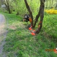 Zhruba ve stejné době došlo k vážné havárii mezi Dobříkovem a Branišovem na Domažlicku, kde řidič se čtyřkolkou narazil do stromu. Na místo opět vyjely všechny záchranné složky, a protože řidič utrpěl velmi vážná zranění a byl v bezvědomí, znovu vzlétl vrtulník LZS.