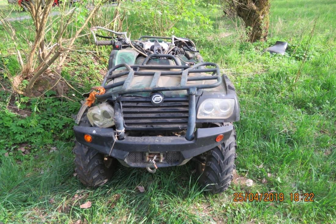 Podle tiskové mluvčí policie byla čtyřkolka bez přidělené registrační značky a třiatřicetiletý muž není držitelem příslušného řidičského oprávnění.