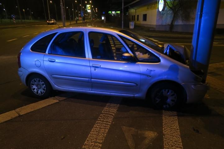 Řidič pokračoval v jízdě do Gerské ulice, při odbočení do Sokolovské ulice znovu nezvládl řízení a jeho jízda už definitivně skončila nárazem do sloupu veřejného osvětlení.