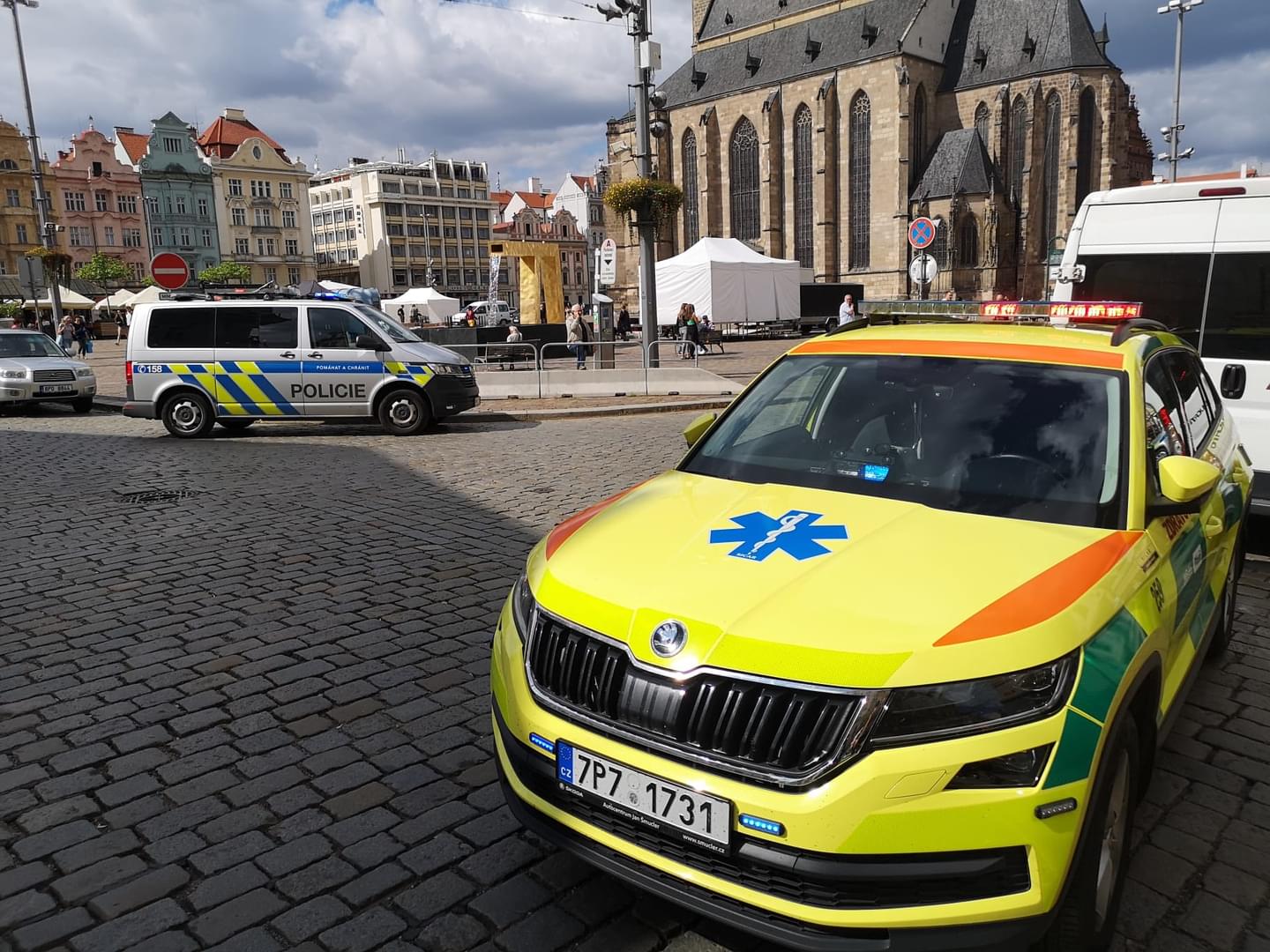 Dnes po půl třetí odpoledne došlo na křižovatce náměstí Republiky, Františkánské ulice a Zbrojnické ulice k dopravní nehodě, při které dodávka Fiat Ducato srazila dvě chodkyně. Podle informací z místa řidič dodávky vyjížděl z Františkánské ulice a zastavil, aby dal přednost vozidlům jedoucím z náměstí do Zbrojnické. Když se ale rozjížděl, stále si kontroloval situaci vlevo a nevšiml si tak dvou žen, které mu před dodávku vešly, došlo ke střetu a sražení obou žen na zem.