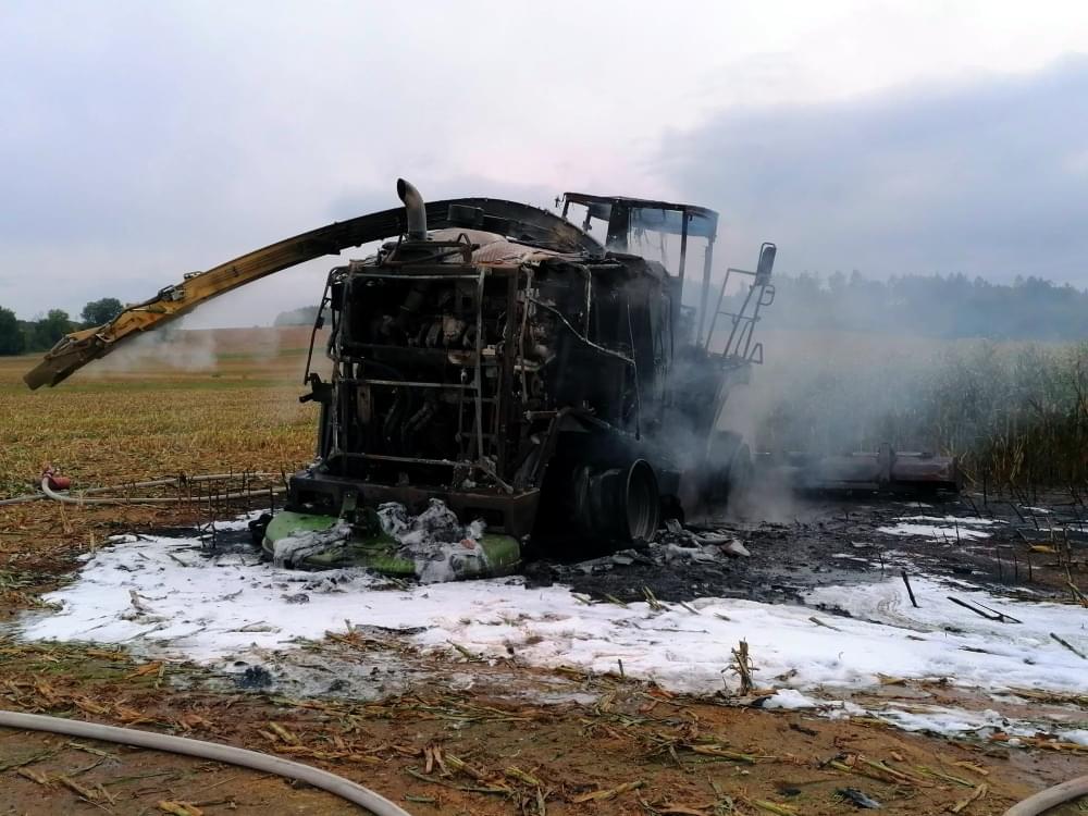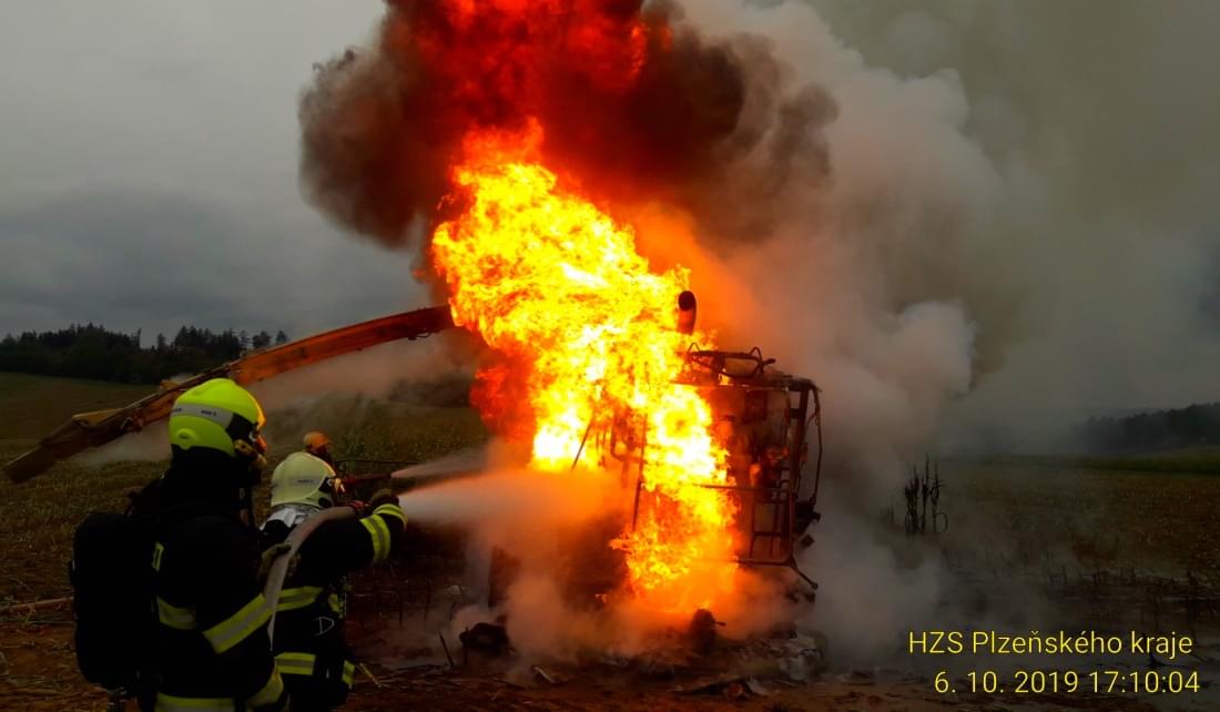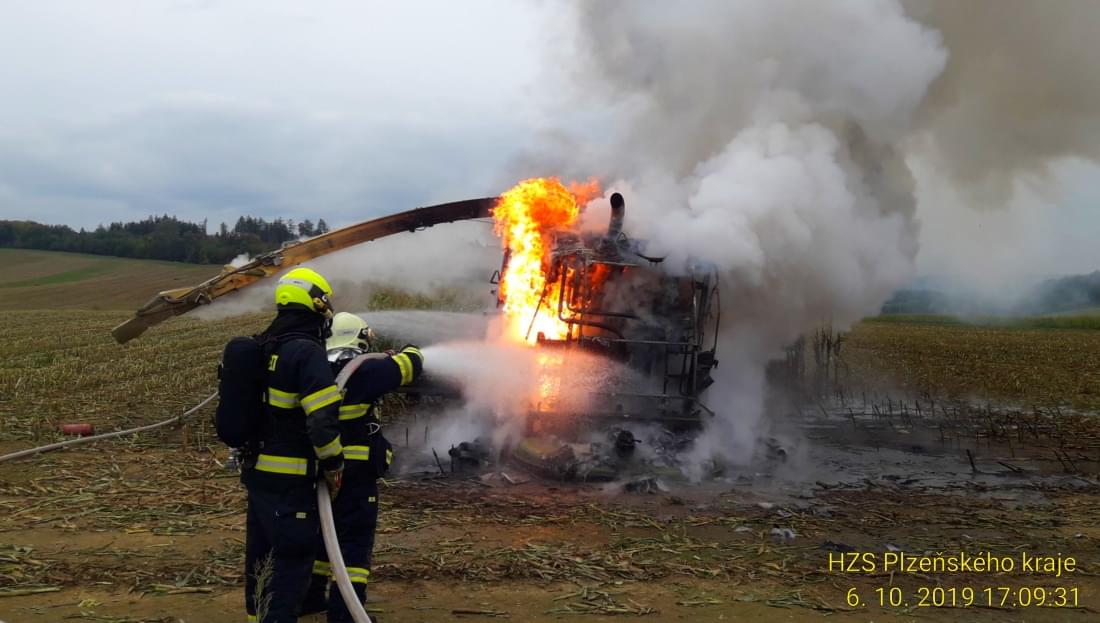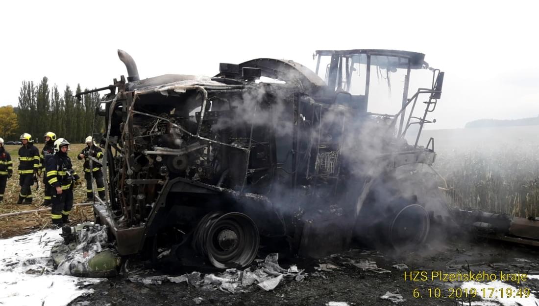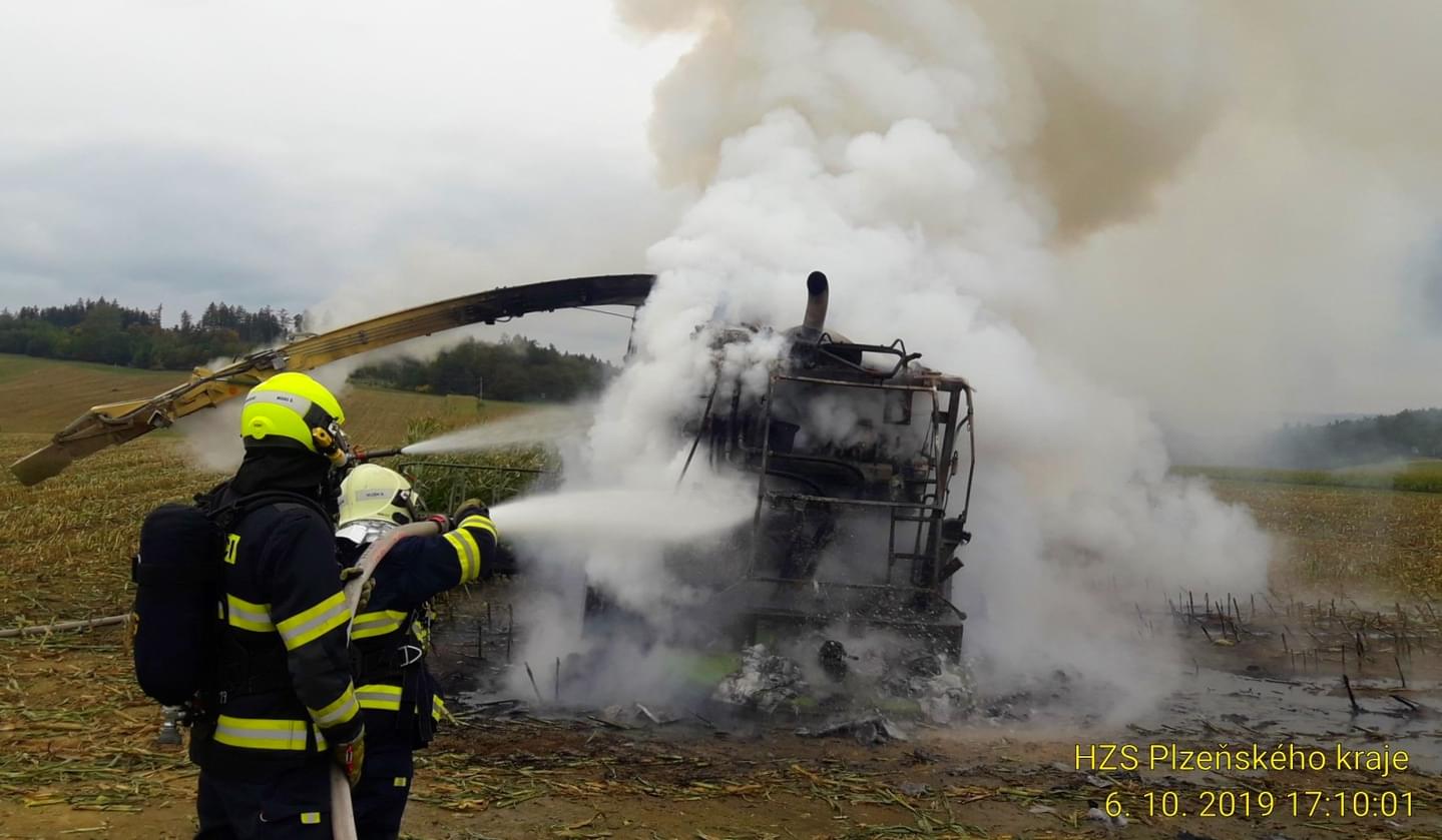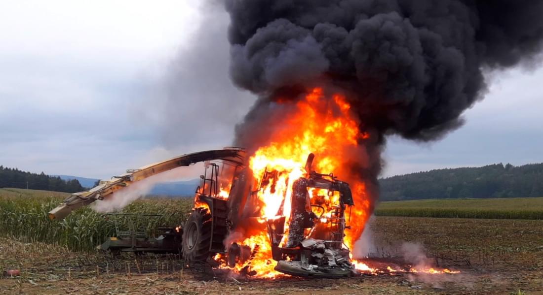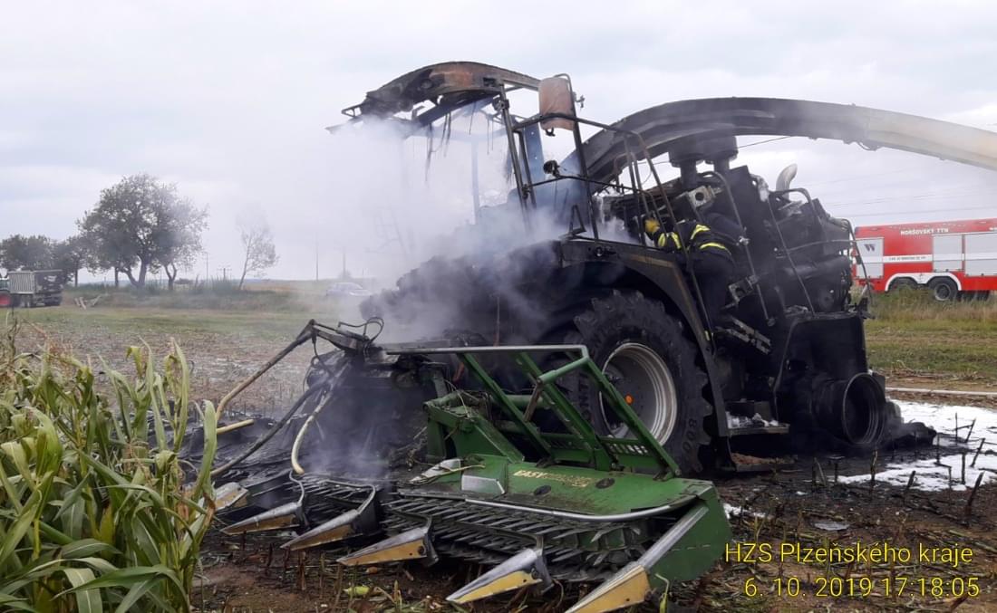 K požáru řezačky kukuřice došlo včera před pátou hodinou odpoledne na poli u Třebnic na Domažlicku.