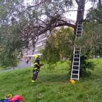 Další kuriózní zásah mají za sebou hasiči, v pondělí večer ze stromu v Karlových Varech sundávali nejen dron, ale i jeho patnáctiletého pilota. Malý dron uvízl v koruně stromu, chlapec se nejprve rozhodl na strom vylézt a dron si sundat sám. Ve výšce asi pěti metrů se ale chlapci zasekla noha ve větvích a nedokázal již sám ani postupovat dál nahoru, ani slézt dolů.