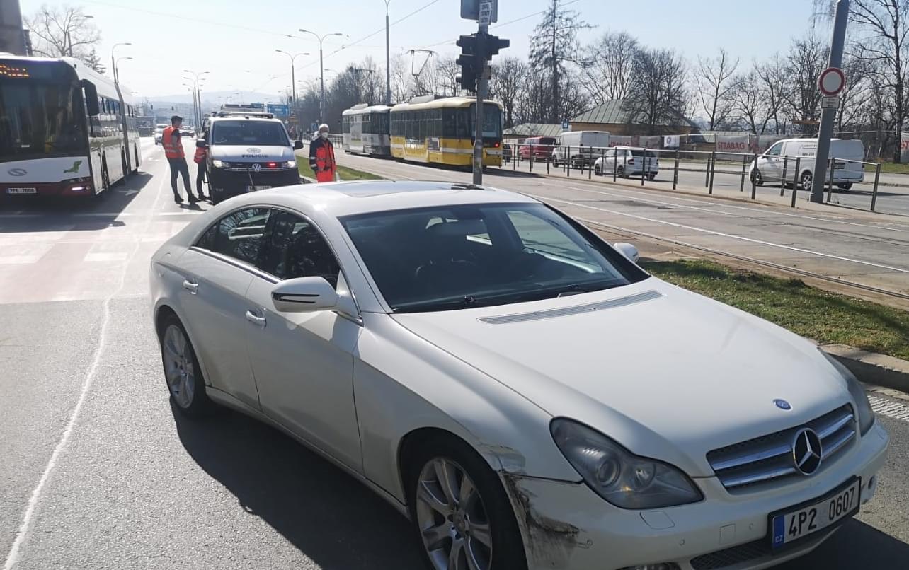 Dnes krátce před desátou hodinou dopoledne došlo na křižovatce ulic Karlovarská a Na Chmelnicích v Plzni k dopravní nehodě, při které řidič jedoucí ve voze Mercedes naboural sanitku Zdravotnické záchranné služby jedoucí na Vinice k pacientovi.