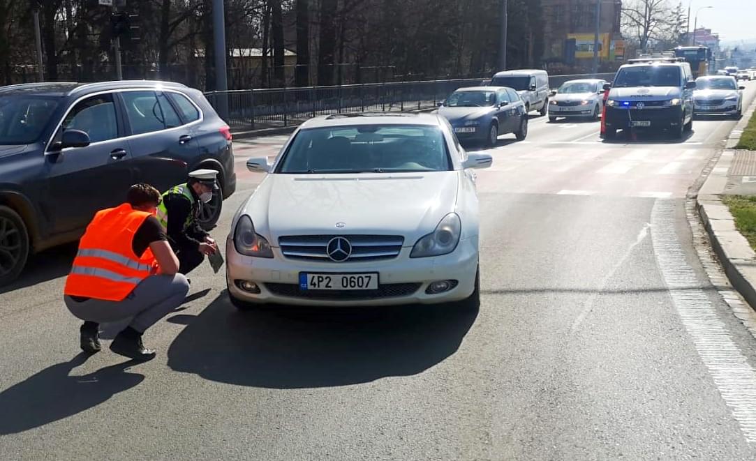 Nehoda částečně blokuje provoz v křižovatce, místo je ale s opatrností průjezdné.