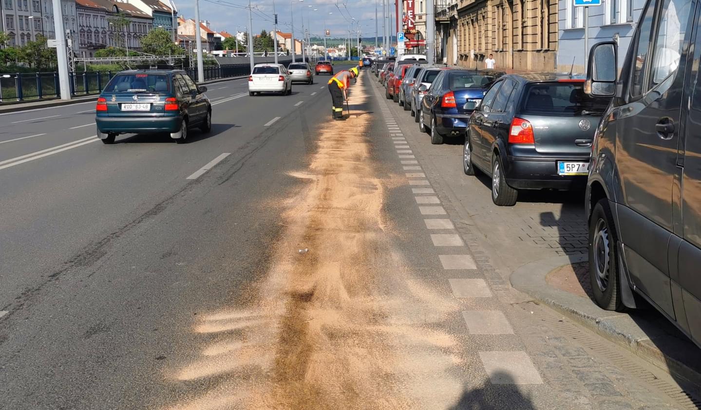 Kde naftu nerozlil on, rozjezdili ji pak ostatní auta, silnice se tak staly vysoce kluzkými a samozřejmě zde hrozí vysoké riziko nehod.