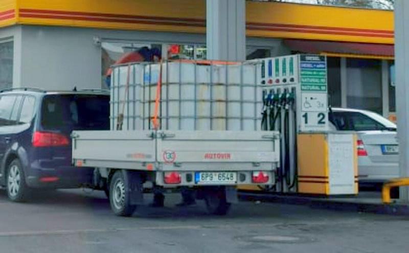 Vzhledem k současné situaci, kdy mimo jiného dochází i k raketovému vzestupu ceny pohonných hmot, se mnoho lidí rozhodlo se připravit a před dalším zdražením se zásobit. Na čerpací stanice tak lidé přijíždí nejen s kanystry, ale i s nádržemi na tisíce litrů nafty (viz první dvě fotky), jejichž převoz bez náležitých dokumentů a školení řidiče ale odporuje zákonu.Tisková mluvčí policie nám na dotaz uvedla, že pro osobní potřebu je možno přepravovat pouze 240 litrů pohonných hmot v šedesátilitrových nádobách.