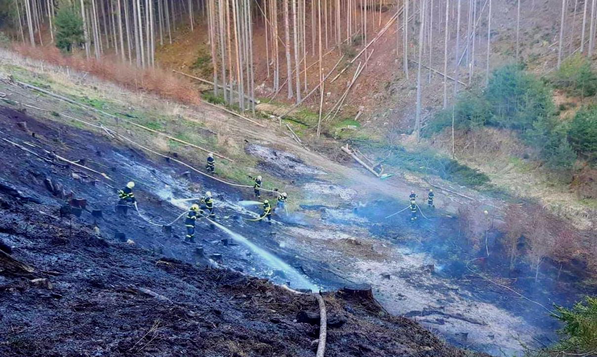 Včera před šestou hodinou večer vyjížděli hasiči k požáru lesního porostu mezi Blahousty a Trpísty. Podle tiskového mluvčího hasičů se původně jednalo o nahlášené pálení dřevěného odpadu z mýtiny vyklízené pro výsadbu mladých stromků, které se ale vymklo a oheň se vlivem větru rozšířil na plochu tři čtvrtě hektaru lesa. Na místo vyjely jednotky z druhého stupně požárního poplachu, oheň se profesionálním a dobrovolným hasičům z devíti jednotek podařilo dostat pod kontrolu po přibližně po půlhodinu od příjezdu prvního vozidla na místo.