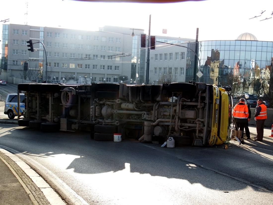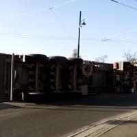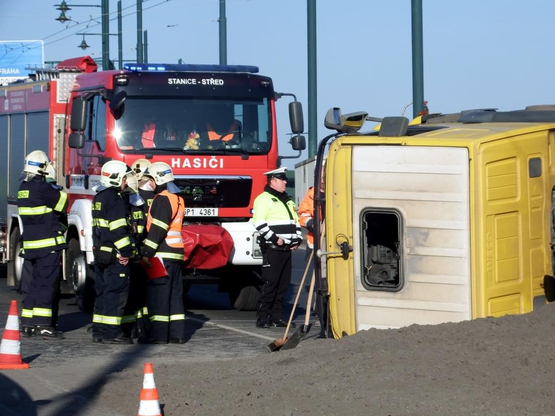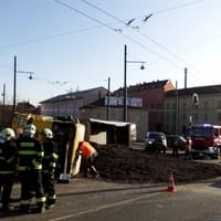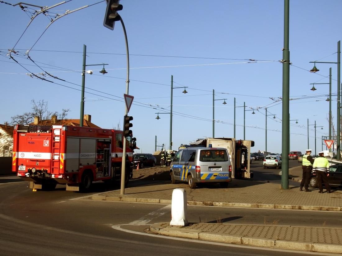 K havárii nákladního vozu došlo dnes před desátou hodinou dopoledne na nájezdu na most přes železniční trať v Lobezské ulici, když se nákladní automobil jedoucí ze Železniční ulice a odbočující vpravo na most v zatáčce převrátil na bok. Při havárii se rozsypalo přibližně 29 tun popílku, které nákladní automobil vezl. Řidič zůstal po havárii uvězněn v kabině vozu, ale podle našich informací neutrpěl zranění. Na místě zasahují hasiči i policisté.