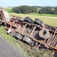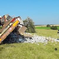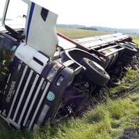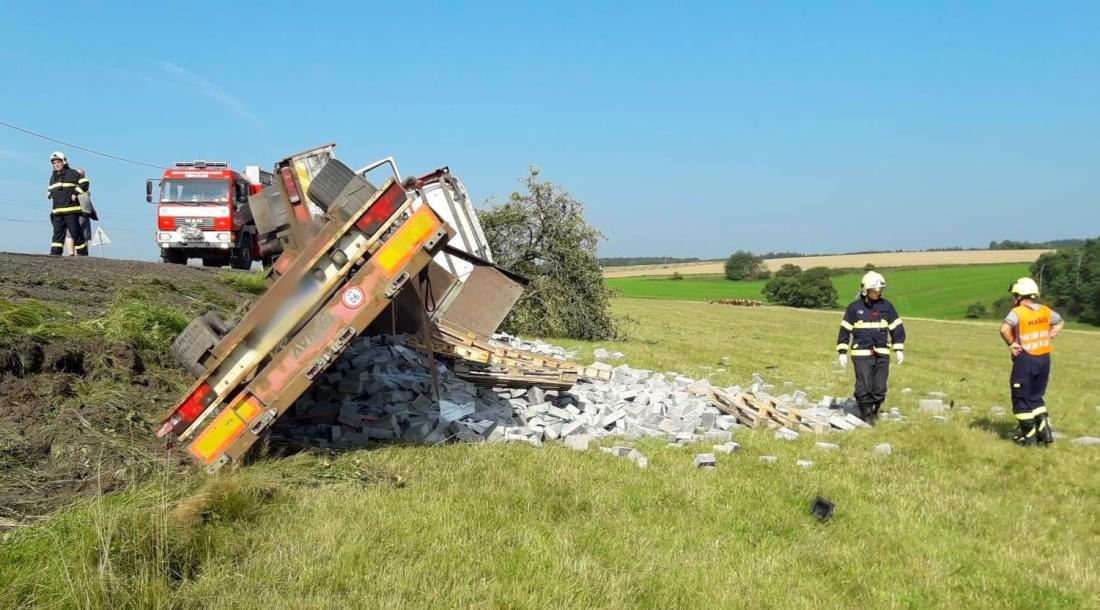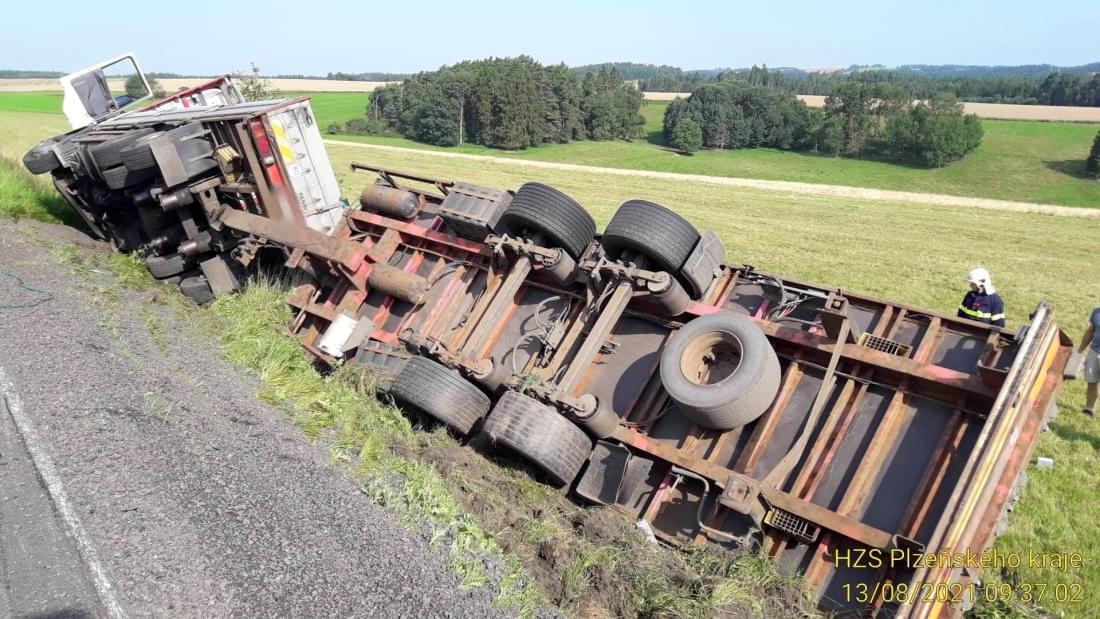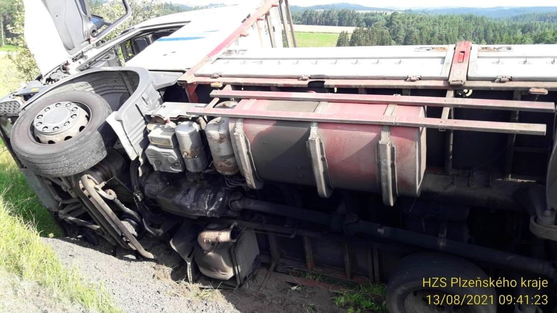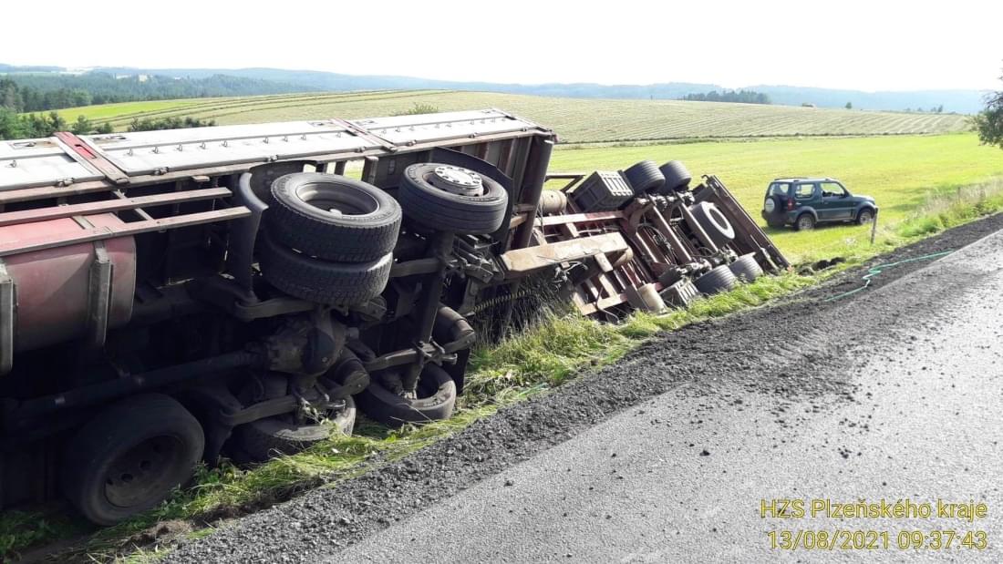 Dnes po deváté hodině dopoledne došlo u obce Svahy na Stříbrsku k havárii nákladního vozidla s přívěsem převážejícího náklad kamene. "Šetřením bylo zjištěno, že řidič narozený v roce 1966 jel od Černošína na Planou, najel na nezpevněnou krajnici a mimo silnici na pastvinu chráněnou ohradníkem, kde navíc narazil do vzrostlého stromu," popsala tisková mluvčí policie.