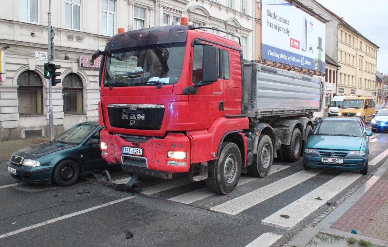 Dnes kolem páté hodiny odpoledne došlo na křižovatce Přemyslovy a Jízdecké ulice k dopravní nehodě, při které se nákladní automobil MAN střetl s osobními vozy Škoda Octavia a Opel.
