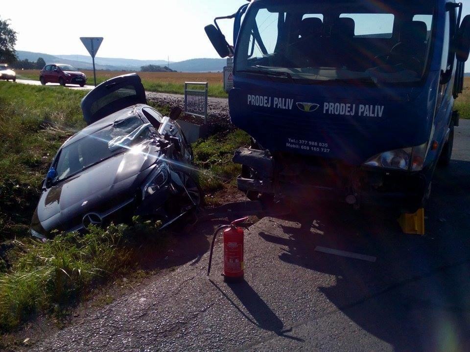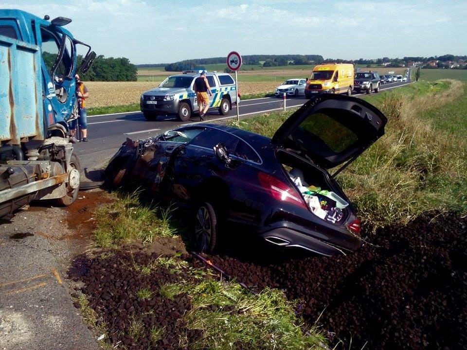 Dnes kolem osmé hodiny ráno došlo na hlavním tahu na Klatovy mezi obcemi Horní Lukavice a Přeštice k vážné dopravní nehodě, když se u odbočky na Dolní Lukavici nákladní automobil, vezoucí uhlí, převrátil na osobní vůz Mercedes. "Řidič ve věku 69 let jel od Dnešic