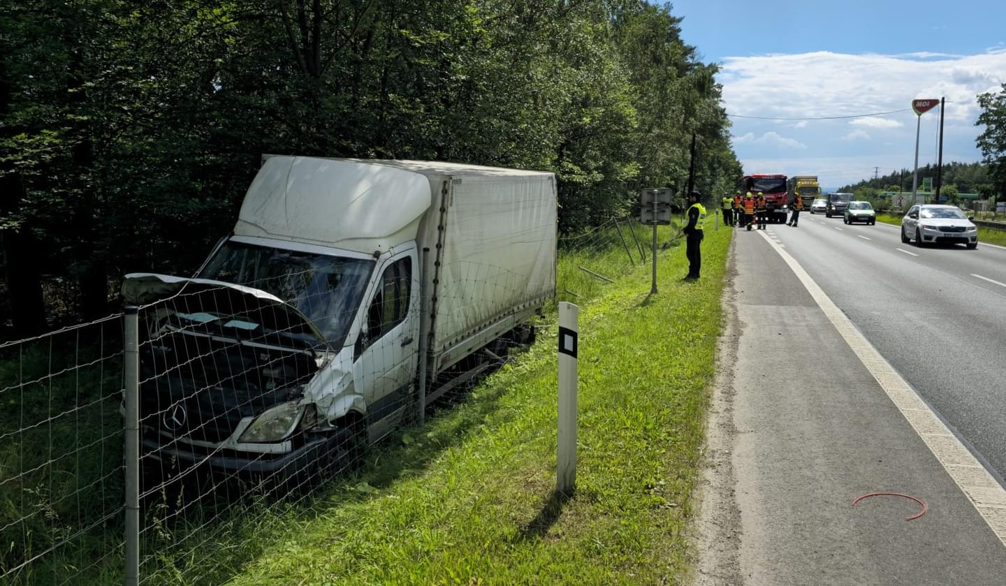 Dnes kolem půl třetí došlo na přivaděči od Sulkova na Plzeň k dopravní nehodě, během které nákladní vůz Mercedes Sprinter na úrovni čerpací stanice MOL Lesní zátiší náhle vyjel mimo vozovku.